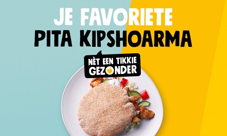 Bij deze pita kipshoarma wisselen we naturel pitabroodjes voor net zo lekkere volkoren pitabroodjes met 2x zoveel vezels.