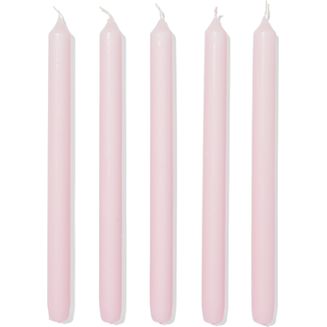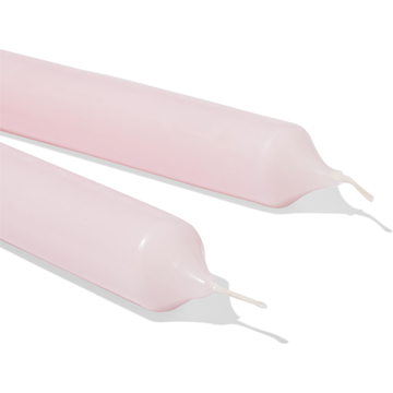 Set van 12 lange lichtroze kaarsen voor binnen. Brandt 12 uur per kaars, zo maak je elke avond gezellig.