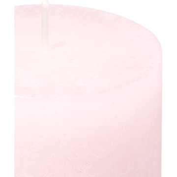 Lichtroze rustieke stompkaars van 7x13 cm voor binnen. Brandt ongeveer 43 uur, zo geniet je lang van warm sfeerlicht.