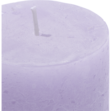 Lila rustieke stompkaars van 7x13 cm. Geeft binnen 43 uur zacht sfeerlicht en past makkelijk bij jouw interieur.