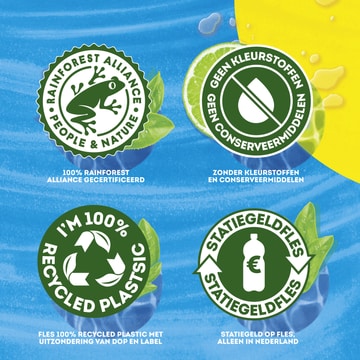 Water, suiker, fructose, voedingszuur (citroenzuur), thee-extract^1 (0,12%), citroensap uit geconcentreerd sap (0,1%), aroma's, zuurteregelaar (trinatriumcitraat), antioxidant (ascorbinezuur), zoetstof (steviolglycosiden), ^1 Rainforest alliance certified. More information on ra.org
