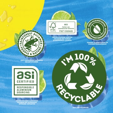 Water, invertsuiker, fructose, voedingszuren (appelzuur, citroenzuur), thee-extract(¹) (0,12%), perziksap van geconcentreerd sap (0,1%), aroma's, zuurteregelaar (trinatriumcitraat), antioxidant (ascorbinezuur), zoetstof (steviolglycosiden van Stevia). (¹)Rainforest Alliance Certified. More information on ra.org.
