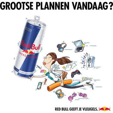 koolzuurhoudend water, sacharose, glucose, voedingszuur (citroenzuur), taurine (0,4%), zuurteregelaar (natriumcitraten), cafeïne (0,03%), vitaminen (niacine, pantotheenzuur, riboflavine, vitamine b6, vitamine b12) aroma's, kleurstoffen (karamel, beta apo-8'-carotenal (c30), stabilisatoren (glycerolesters van houthars, sucroseacetaatisobutyraat)